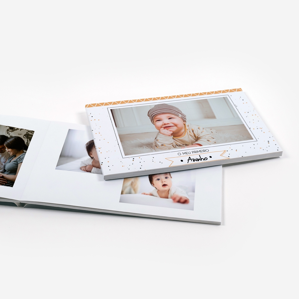 A abertura panorâmica permite que uma única foto ocupe ambas as páginas, oferecendo uma visualização perfeita das suas imagens, sem interrupções ou partes ocultas.